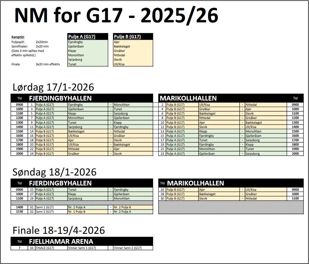 NM for Gutter 17 vil bli spilt i Fjerdingbyhallen og Marikollhallen, 17.-18. januar 2026.